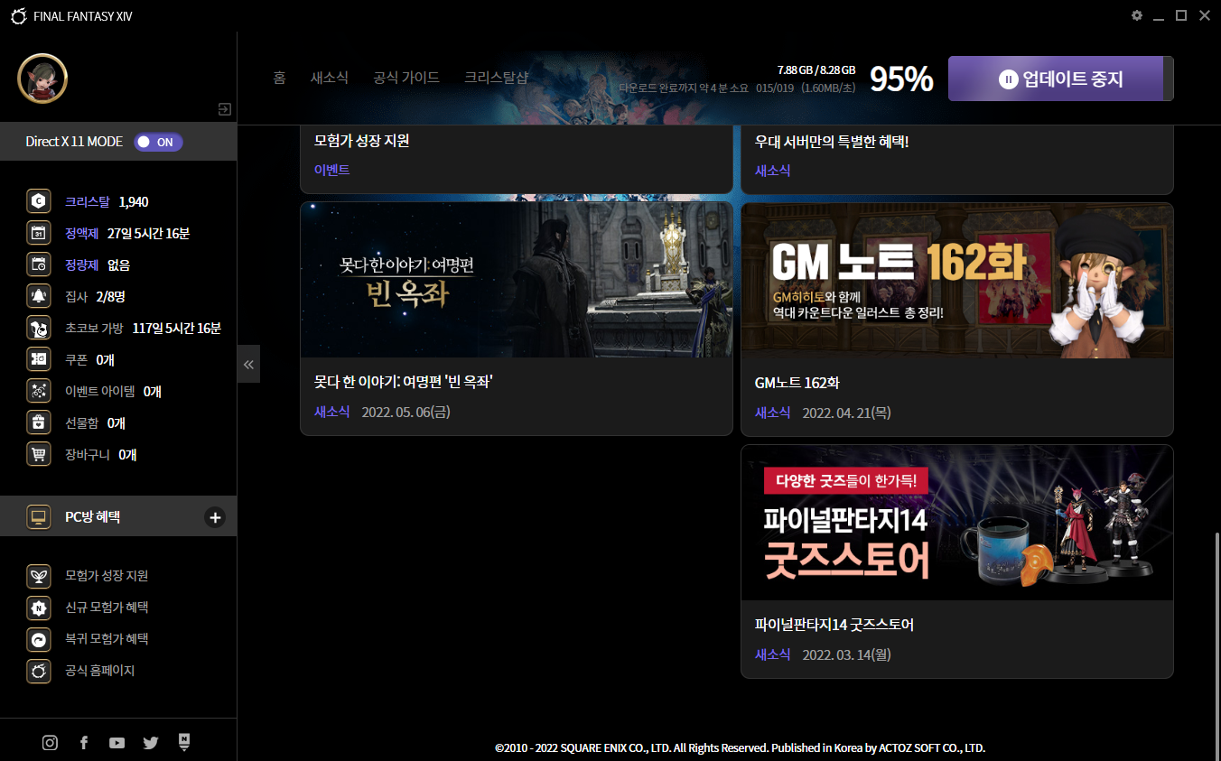 5시 조금 넘어서 업데이트를 다 받고 기다리는데