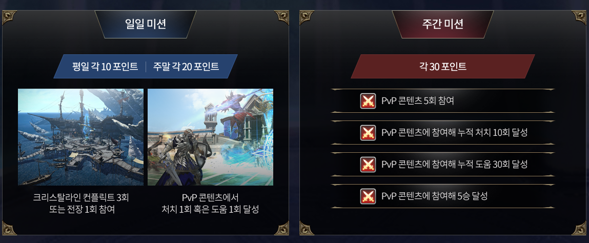 - PvP 콘텐츠에 참여해 누적 도움 30회 달성