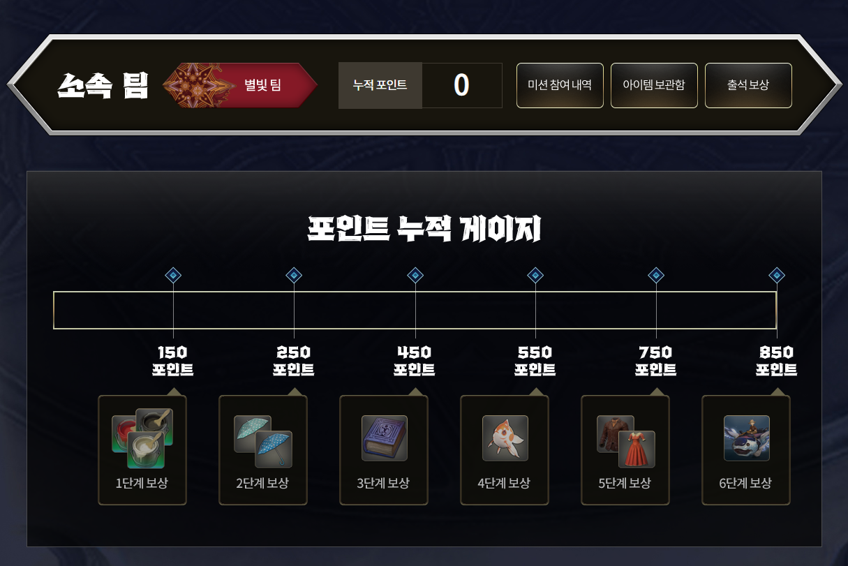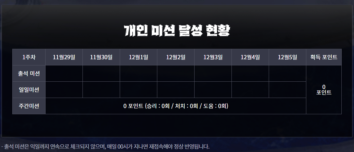 일일/주간 미션을 통해 포인트를 누적하여 단계별 추가 보상을 수령할 수 있습니다.