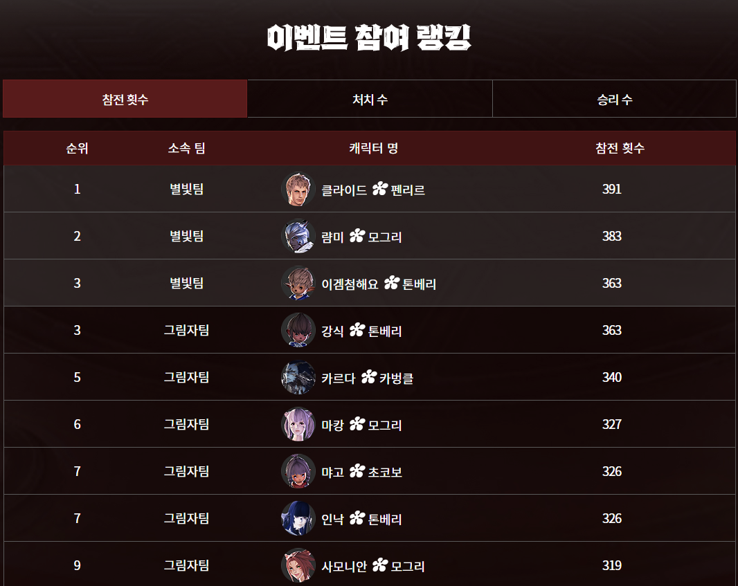 이벤트 참여 랭킹도 보여줌!