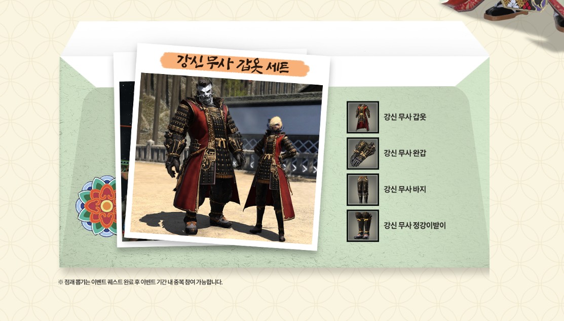 강신제 공로자에게는 강신 무사 갑옷 세트를 지급해 드립니다.