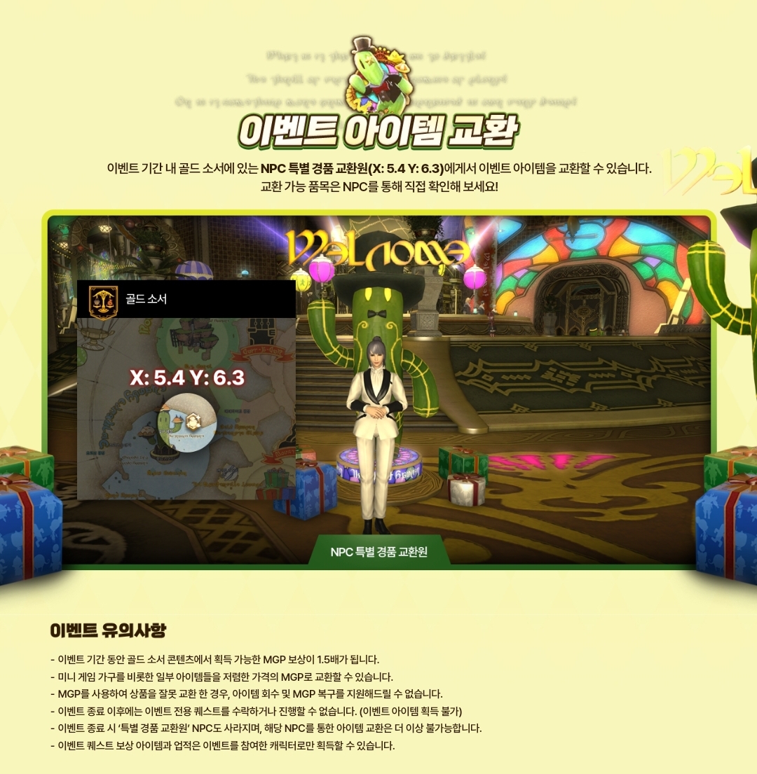 이벤트기간 내골드 소서에 있는 NPC 특별 경품 교환원에게서 이벤트 아이템을 교환할 수 있습니다.