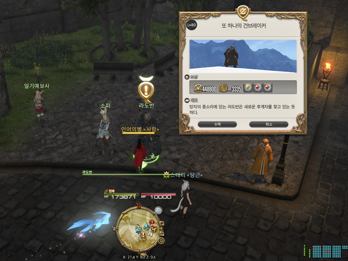 근데 난 분명 칠흑 역할 퀘스트를 다 했는데, 젠린스가 퀘스트를 안줘서 진짜 설마설마 하고 크리스타리움 갔는데 딱.. 방어 역할 퀘스트만 안했음.. 아니 ㅋㅋㅋ 이거 실화야?? ㅎㅎ 급하게 방어 역할 퀘스트 완료 했다.